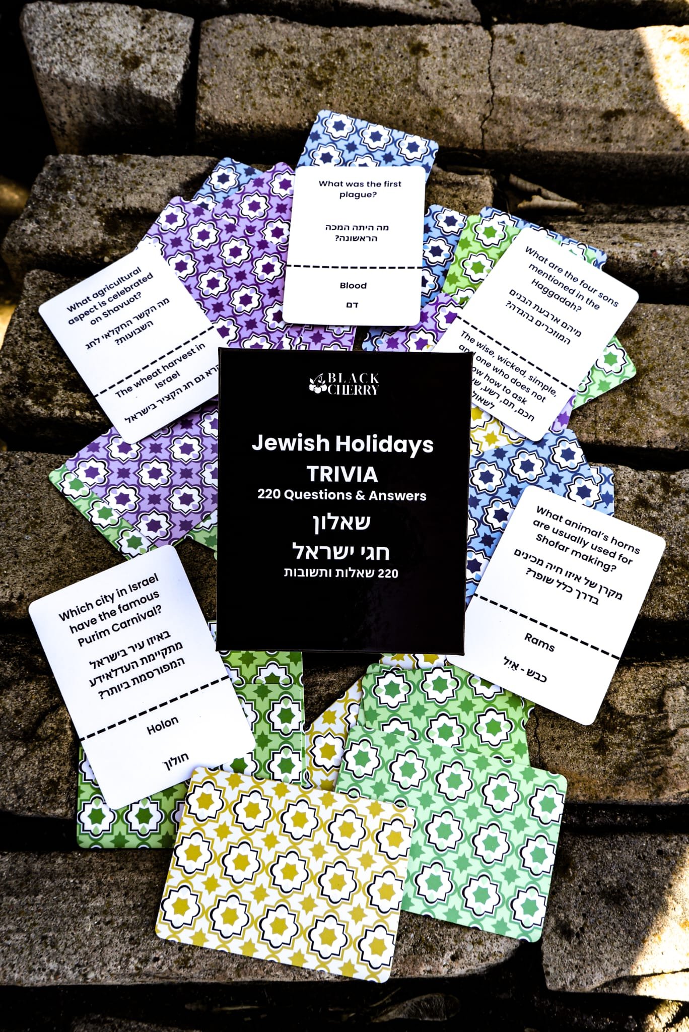 The Jewish Holidays Trivia Game is packed with 200+ smart, surprising, and laugh-out-loud questions covering 6 major Jewish holidays – Rosh Hashanah, Sukkot, Hanukkah, Purim, Passover, Shavuot..